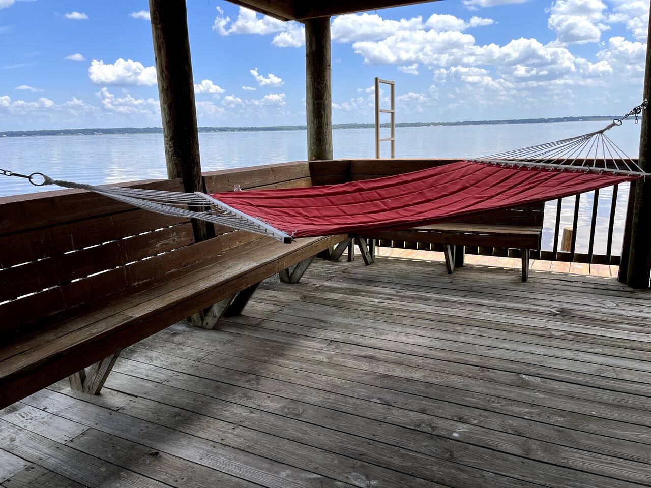This amazing lake front property has room for the whole family. Measuring at over 4000 square feet of interior space and more than 900 square feet of screened porch, everyone will be able to spread out and relax. In addition each guest room has access to its own bathroom allowing each set of guests to retreat into their own private space when the time comes to recharge for the next adventure. The boat house over the water is another enormous space where you might just spend all your time. Peaceful and breezy with seating for 20 including hanging chairs and a hammock. Bring your boat and anchor right off the sandy beach. Over 140 feet of sandy beach lakefront so you can enjoy many different types of water and sandy activities! Enjoy a beach bonfire in the fire pit and roast some s'mores! You will find yourself gathering for meals in the gigantic gourmet kitchen and making memories together or possibly making all your meals outside on the Weber grill and Blackstone griddle.
